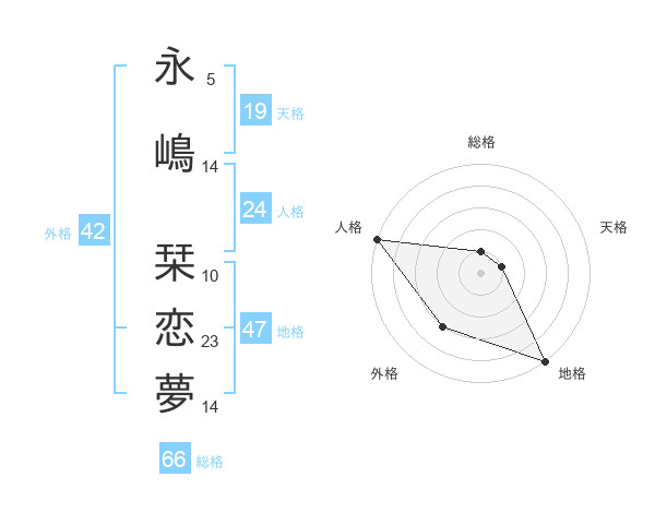 永嶋 栞恋夢さんを姓名の画数から五運を鑑定
