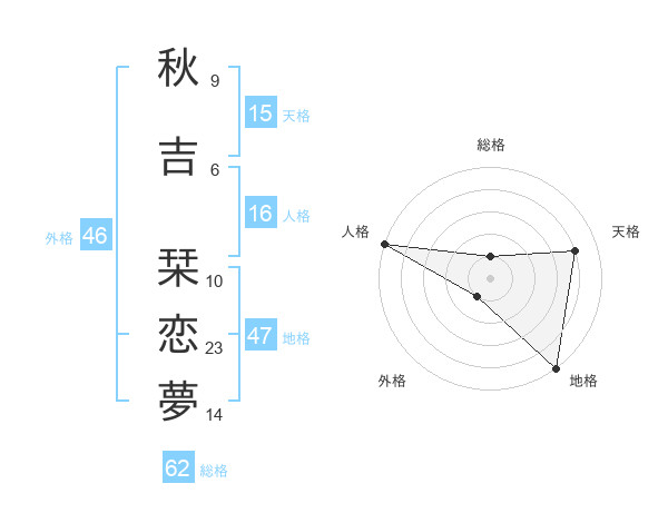 秋吉 栞恋夢さんを姓名の画数から五運を鑑定