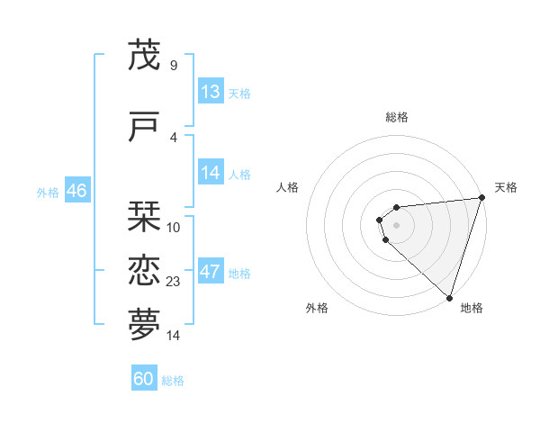 茂戸 栞恋夢さんを姓名の画数から五運を鑑定