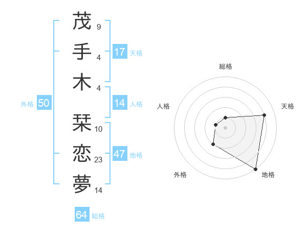 茂手木 栞恋夢さんを姓名の画数から五運を鑑定