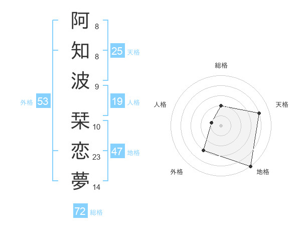 阿知波 栞恋夢さんの天格は25画の4点!