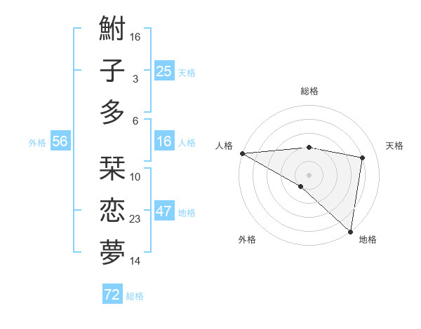 鮒子多 栞恋夢さんの外格は56画の1点!