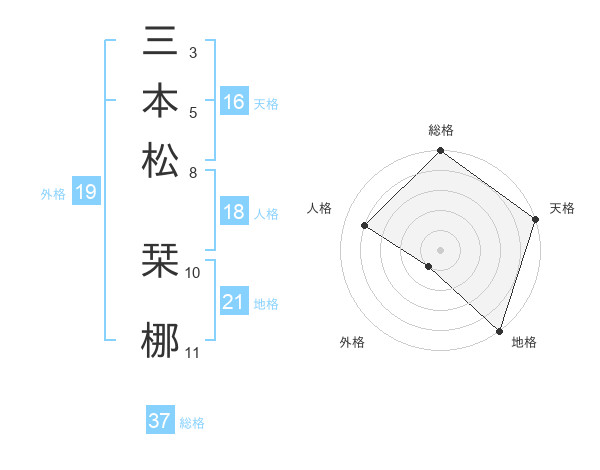 三本松 栞梛さんの天格は16画の5点!