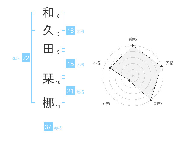 和久田 栞梛さんを姓名の画数から五運を鑑定