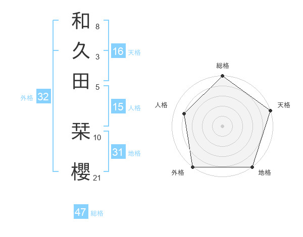 和久田 栞櫻さんを姓名の画数から五運を鑑定