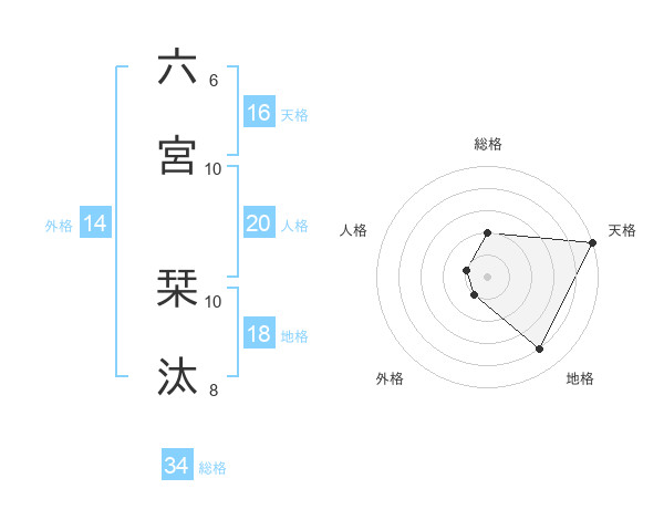 六宮 栞汰さんの総格は34画の2点!