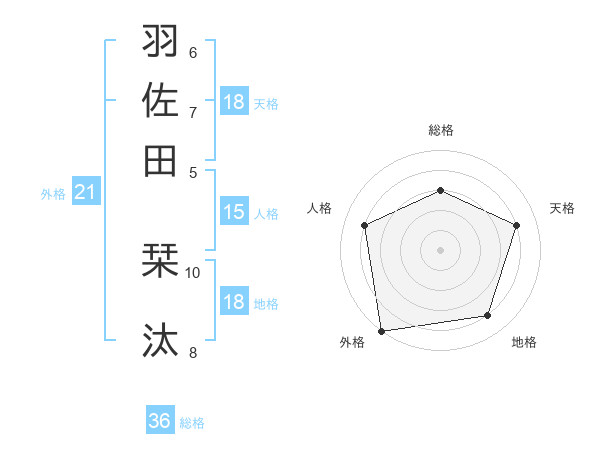 羽佐田 栞汰さんを姓名の画数から五運を鑑定