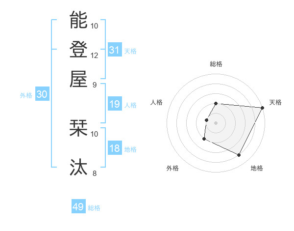 能登屋 栞汰さんの総格は49画の2点!