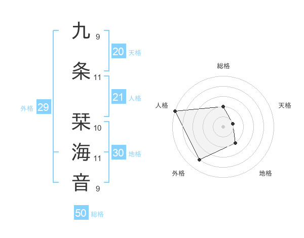 九条 栞海音さんを姓名の画数から五運を鑑定