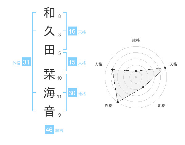 和久田 栞海音さんを姓名の画数から五運を鑑定