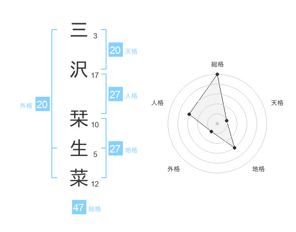 三沢 栞生菜さんの総格は47画の5点!