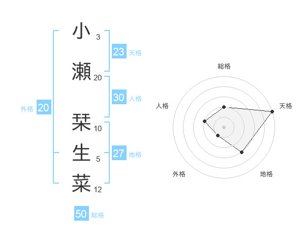 小瀬 栞生菜さんを姓名の画数から五運を鑑定