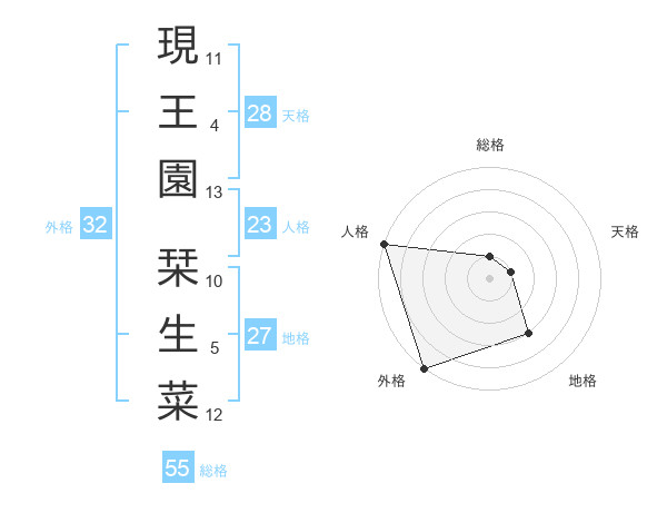 現王園 栞生菜さんを姓名の画数から五運を鑑定
