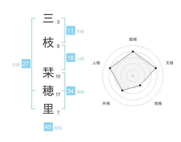 三枝 栞穂里さんを姓名の画数から五運を鑑定