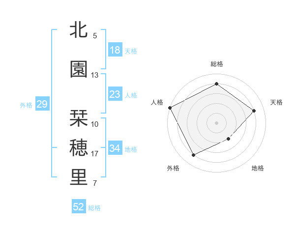 北園 栞穂里さんを姓名の画数から五運を鑑定