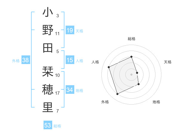 小野田 栞穂里さんを姓名の画数から五運を鑑定