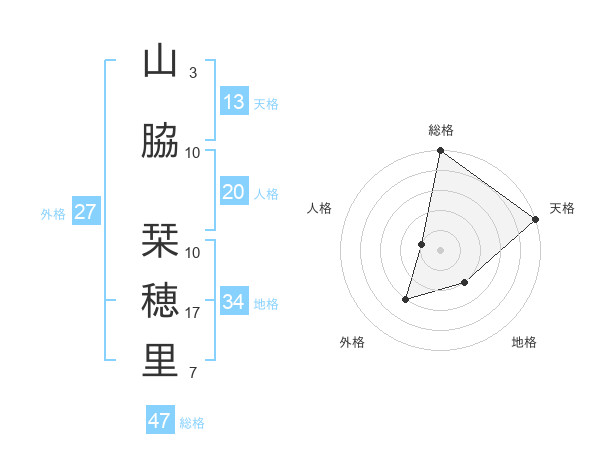 山脇 栞穂里さんを姓名の画数から五運を鑑定