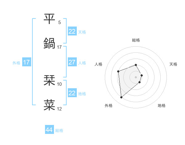 平鍋 栞菜さんを姓名の画数から五運を鑑定