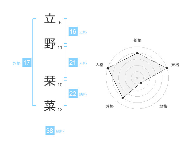 立野 栞菜さんを姓名の画数から五運を鑑定