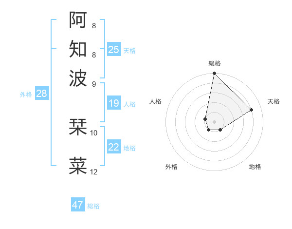 阿知波 栞菜さんの天格は25画の4点!