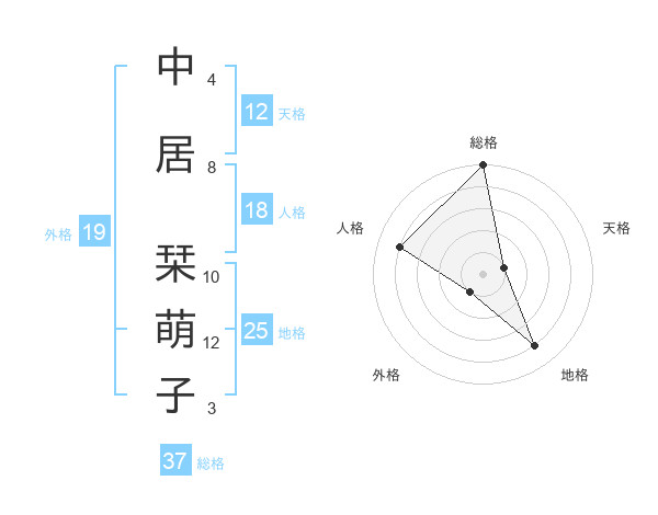 中居 栞萌子さんを姓名の画数から五運を鑑定