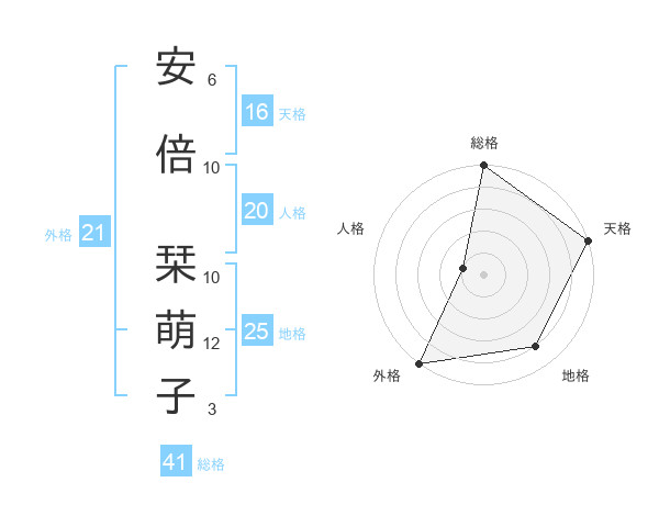安倍 栞萌子さんの天格は16画の5点!