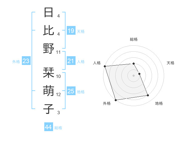日比野 栞萌子さんを姓名の画数から五運を鑑定
