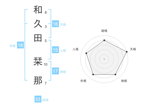 和久田 栞那さんを姓名の画数から五運を鑑定