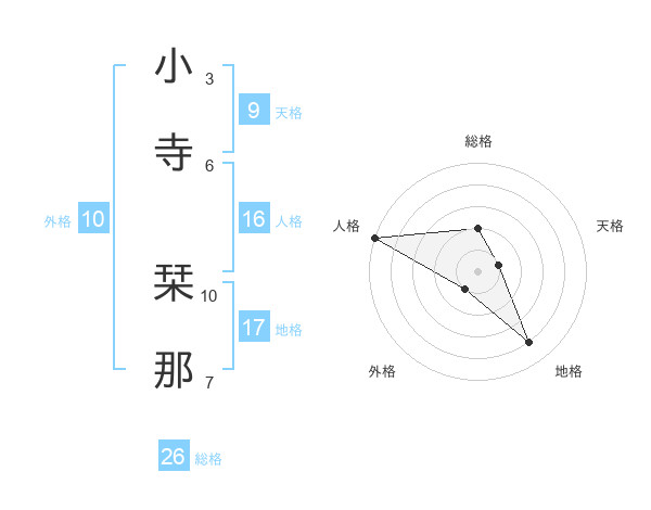 小寺 栞那さんの総格は26画の2点!