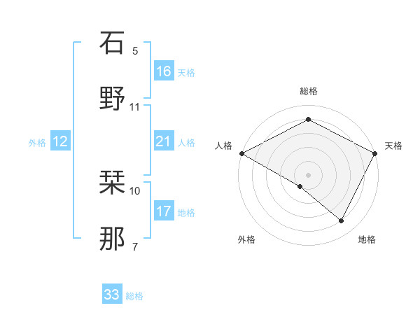 石野 栞那さんの天格は16画の5点!