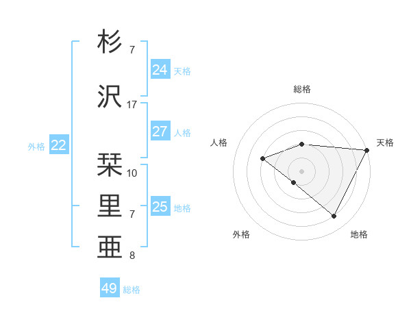 杉沢 栞里亜さんの天格は24画の5点!