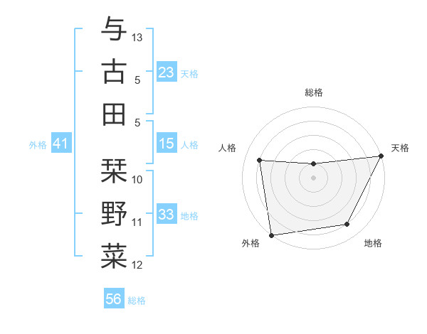与古田 栞野菜さんを姓名の画数から五運を鑑定