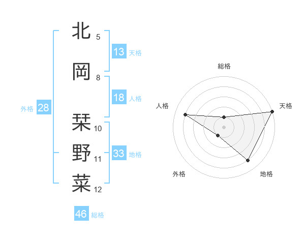 北岡 栞野菜さんを姓名の画数から五運を鑑定