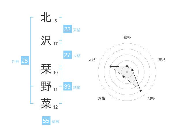 北沢 栞野菜さんを姓名の画数から五運を鑑定