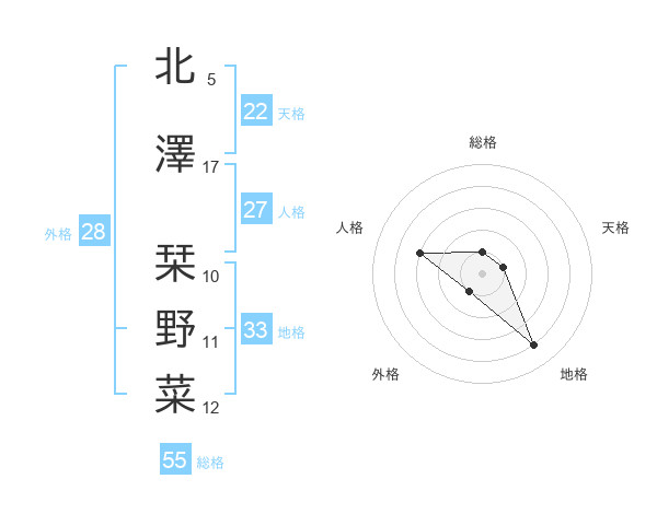 北澤 栞野菜さんを姓名の画数から五運を鑑定
