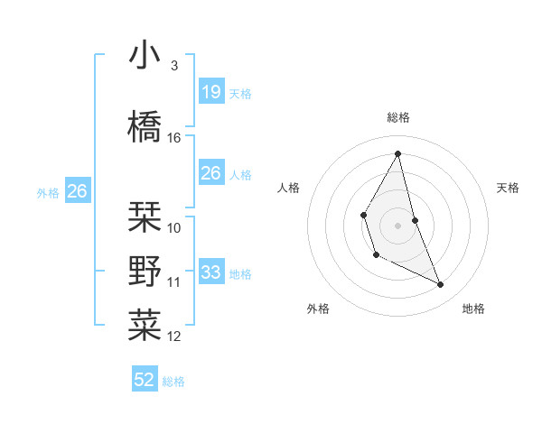 小橋 栞野菜さんを姓名の画数から五運を鑑定
