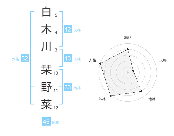 白木川 栞野菜さんの外格は32画の5点!