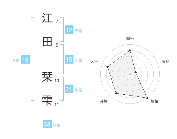 江田 栞雫さんの総格は33画の4点!