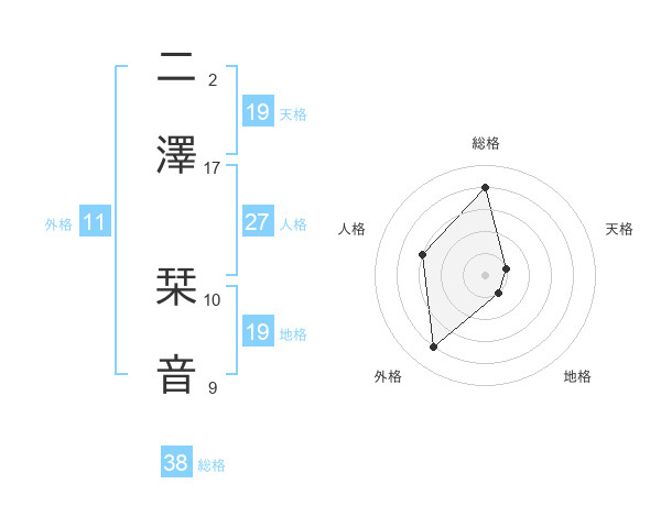 二澤 栞音さんを姓名の画数から五運を鑑定