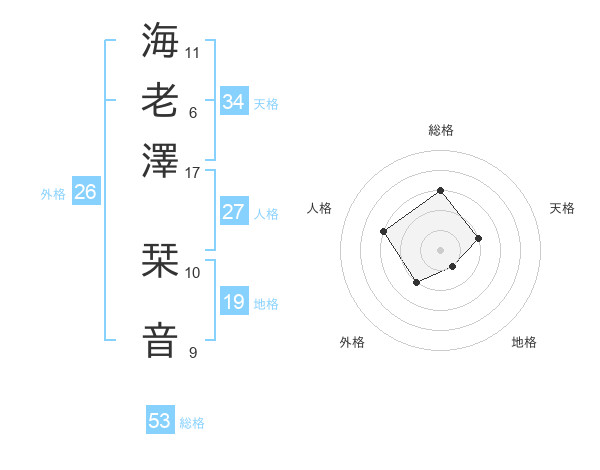 海老澤 栞音さんを姓名の画数から五運を鑑定