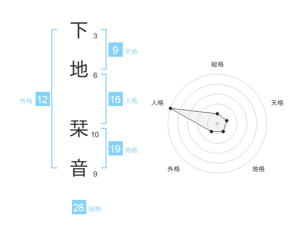 下地 栞音さんの外格は12画の1点!