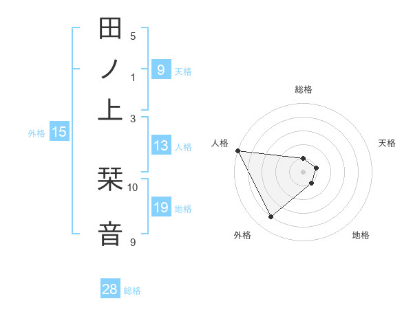 田ノ上 栞音さんの総格は28画の1点!