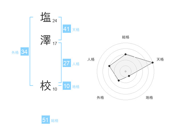 塩澤 校さんの総格は51画の3点!