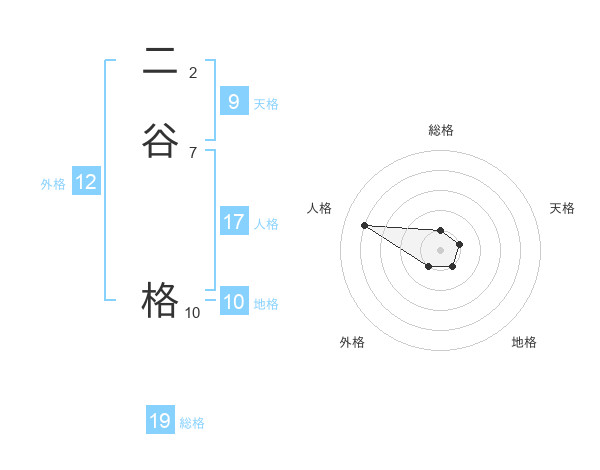 二谷 格さんを姓名の画数から五運を鑑定