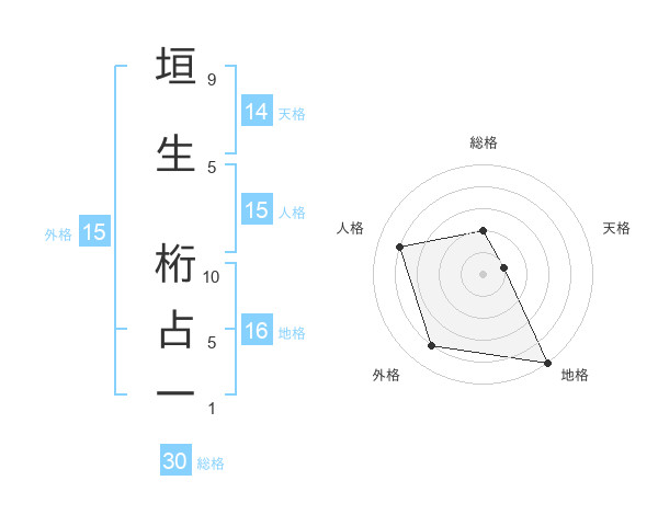垣生 桁占一さんを姓名の画数から五運を鑑定