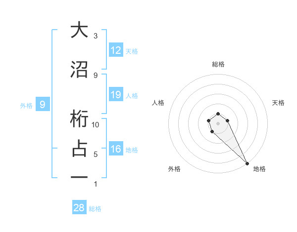 大沼 桁占一さんを姓名の画数から五運を鑑定