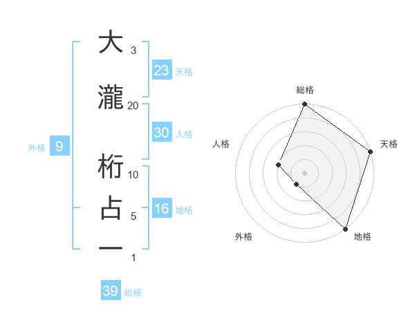 大瀧 桁占一さんの天格は23画の5点!