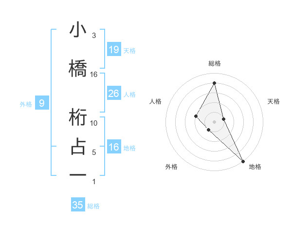 小橋 桁占一さんを姓名の画数から五運を鑑定