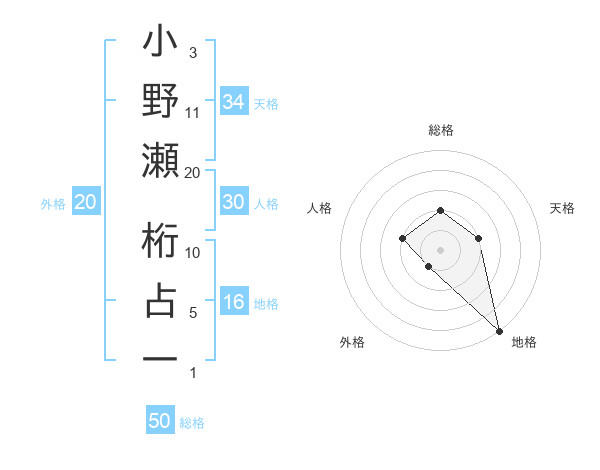 小野瀬 桁占一さんの総格は50画の2点!