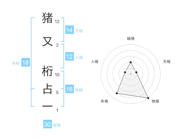 猪又 桁占一さんを姓名の画数から五運を鑑定